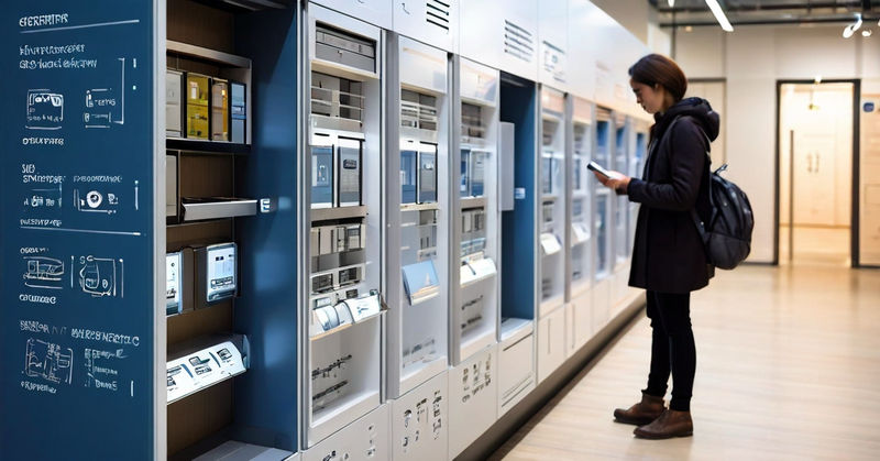 Lockers Inteligentes: Cada compartimento es visible y accesible, mostrando claramente los objetos disponibles para préstamo. El sistema de lockers está equipado con un mecanismo de bloqueo y desbloqueo controlado por una aplicación móvil.